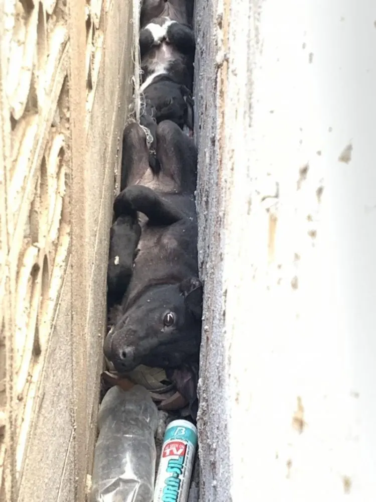 สุนัข 4 ตัว ทำได้แค่ร้องโหยหวน หลังถูกคนใจร้าย โยนทิ้งยัดซอกตึกขาชี้ฟ้า
