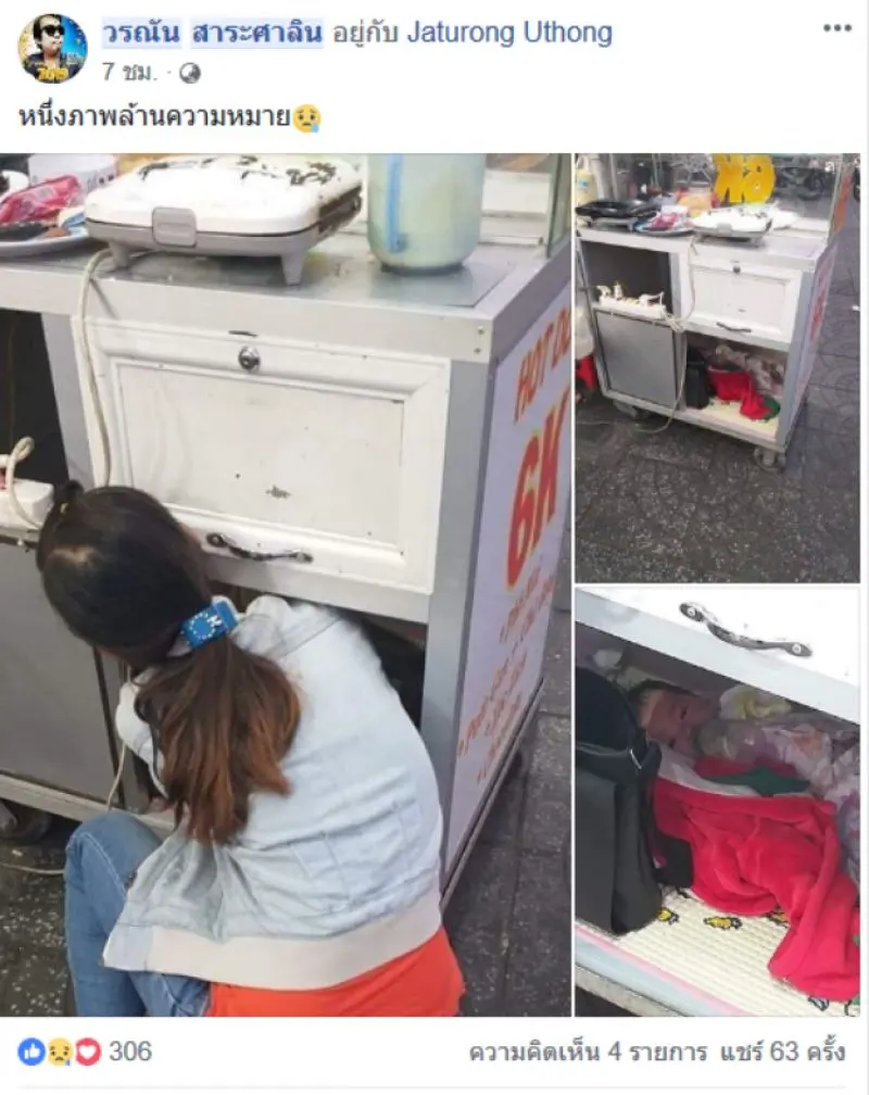 หลายคนดูแล้วสงสัย ว่าเขาทำอะไรเมื่อแต่สังเกตดีๆ จะพบว่า คุณแม่ กำลังเลียงลูกไปด้วย ขายของไปด้วย โดยการนำลูกไปไว้ด้านล้างของโต๊ะขายของ ซึ่งลูกก็กำลังกินนมอยู่ แถมเด็กน้อยก็ไม่งอแงแต่อย่างใด
