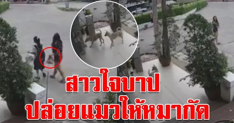 สาวใจบาป เอาแมวมาปล่อยทิ้ง จนหมารุมกัดตาย ยืนดูอย่างหน้าตาเฉย (คลิป)