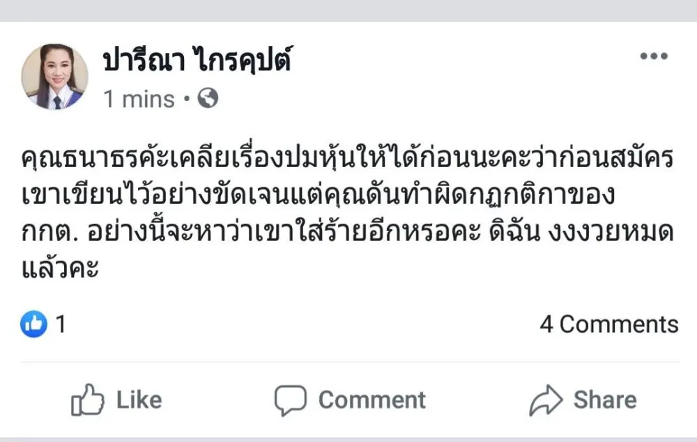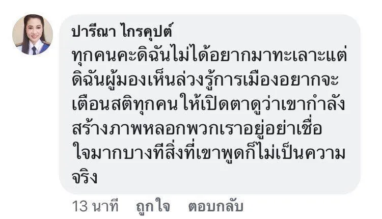 “ช่อ”รับยังไม่ได้เปิดดูคลิปไลฟ์สด และไม่ติดใจ และไม่ตอบโต้"ปารีณา" ใช้คำเรียก”อี “ มองไม่ใช่เรื่องสำคัญ พรรคอนาคตใหม่มีงานสำคัญให้ทำอีกมาก ชี้เป็นส.ส. ผู้ทรงเกียรติต้องทำตัวให้คุ้มค่ากับภาษีประชาชน