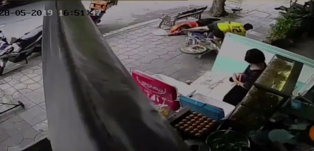 เมื่อวานนี้ (28 พ.ค.2562) เวลา 16.51 น. กล้องวงจรปิดบันทึกภาพขณะที่พนักงานรับซื้ออาหารของแอปพลิเคชั่นหนึ่ง ถูกรถจักรยานยนต์ ชนอย่างแรงบนทางเท้าหน้าร้านราดหน้า ใกล้เคียงปากซอยเอกชัย55 แขวงคลองบางบอน เขตบางบอน กรุงเทพมหานคร พ.ต.ท.ศุภชัย เถรสันเที้ยะ พนักงานสอบสวนสถานีตำรวจนครบาลบางขุนเทียน ได้รับแจ้งอุบัติเหตุ จึงเดินทางไปตรวจสอบ โดยทราบชื่อผู้ที่ได้รับบาดเจ็บ คือ นายธนโชติ กลมเกลี้ยง อายุ 49 ปี เป็นพนักงานขับรถของแอปพลิเคชั่นหนึ่ง ส่วนผู้ที่ขับรถชนนั้นยืนรอให้การกับเจ้าหน้าที่ตำรวจ พร้อมรถจักรยานยนต์ ทราบชื่อคือ นายณัฐชา แจ้งสว่าง อายุ 19 ปี ขับขี่รถจักรยานยนต์