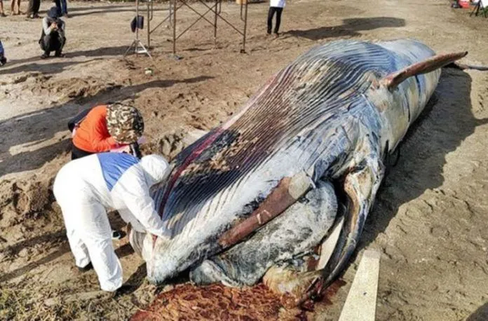 ความคืบหน้า เมื่อวันที่ 29 พ.ค. ผู้สื่อข่าวรายงานว่า เรือประมงลากซากวาฬบรูด้าเข้ามายังฝั่งบริเวณพื้นที่ ม.2 ตำบลปากทะเล อำเภอบ้านแหลม จังหวัดเพชรบุรี เพื่อนำซากผ่าพิสูจน์ โดยมีน.ส.พัชราภรณ์ เยาวสุต เจ้าพนักงานประมงชำนาญงาน นำทีมเจ้าหน้าที่ประมง ทำการผ่าซากพิสูจน์