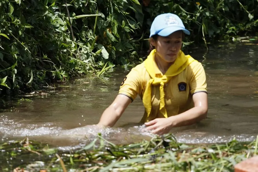 นางฟ้าจิตอาสา ไม่ห่วงสวย ลุยลอกลำตะคอง