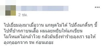 -ไปเยี่ยมลุงมาเมื่อวาน แกพูดไม่ได้ ไปถึงแกดิ้นๆ ชี้ไปที่ปากกาบนเสื้อ ผมเลยหยิบให้แกเขียน โมโหแต่ไม่กล้าโวย กลัวมันยิ่งทำร้ายลุงเรา รอให้ลุงกุออกจาก รพ ก่อนเถอะ