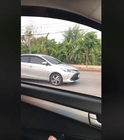 หนุ่มข้าราชการลงเก๋ง Vios “ถีบท้ายคู่กรณี” สาวควงหนุ่มชกกระจกแตก