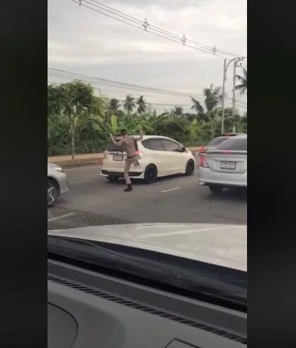 เหตุการณ์ระทึกที่ยังไม่ทราบต้นตอของเรื่อง พบหนุ่มสวมชุดข้าราชการลงจากรถเก๋ง Vios วิ่งโร่ถีบรถเก๋งคู่กรณี จากนั้นสาวควงแฟนหนุ่มลงรถแจ๊ซวิ่งตามเอาเรื่องก่อนที่หนุ่มเสื้อดำจะใช้กำปั้นชกกระจกจนแตก