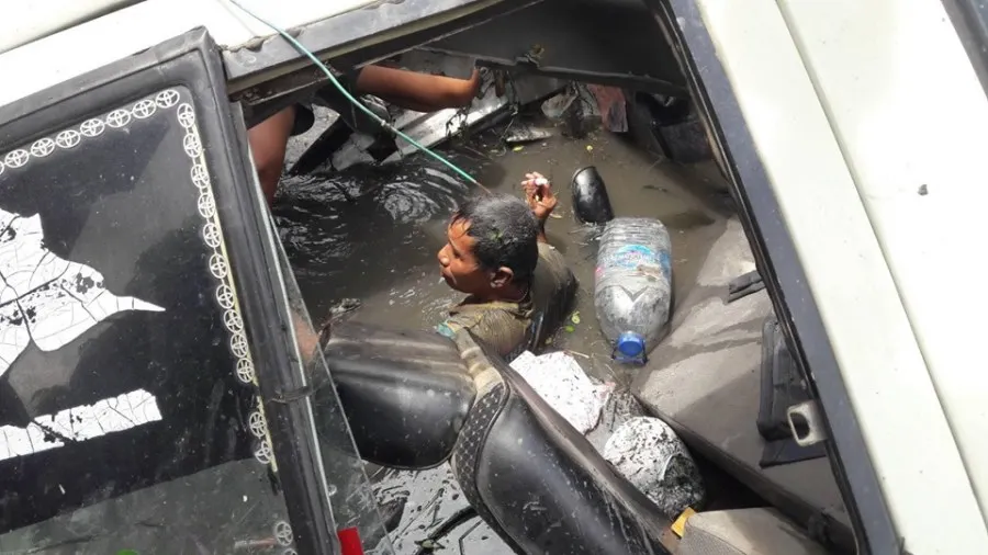 เผยนาทีชีวิตหนุ่มปีนสายไฟข้ามตึกหนีตๅย หลังน้ำทะลักสูง บ้านจมมิดถึงชั้น 2