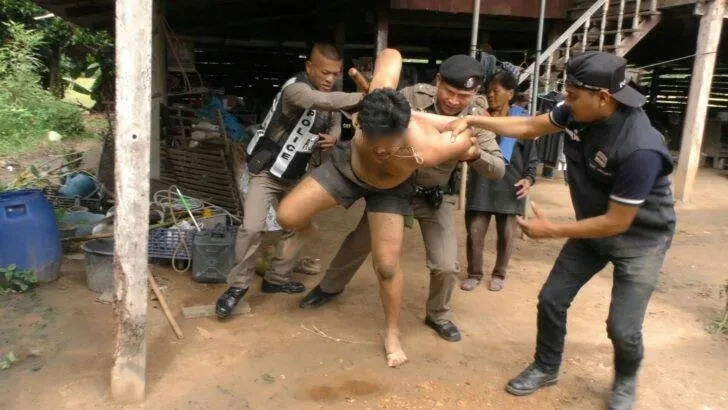 หนุ่มคลั่งยาบุกโรงเรียนหาครูสาว ก่อนโดนเจ้าหน้าที่ตำรวจสยบหามแขนขาส่งบำบัด