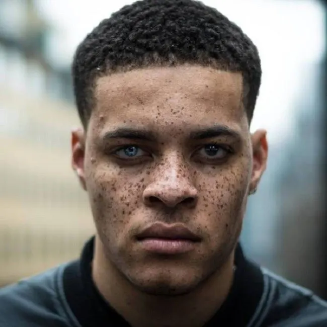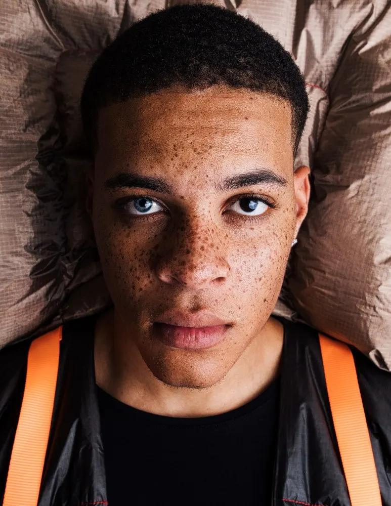 Kaine Buffonge อายุ 19 ปี หนึ่งในนายแบบที่เป็นที่ต้องการมากที่สุดในโลก ด้วยกระและดวงตาที่มีสีต่างกันทำให้แบรนด์ชั้นนำหลายแห่งต้องการให้เขานำเสนอผลิตภัณฑ์ของตนบนแคทวอล์ค