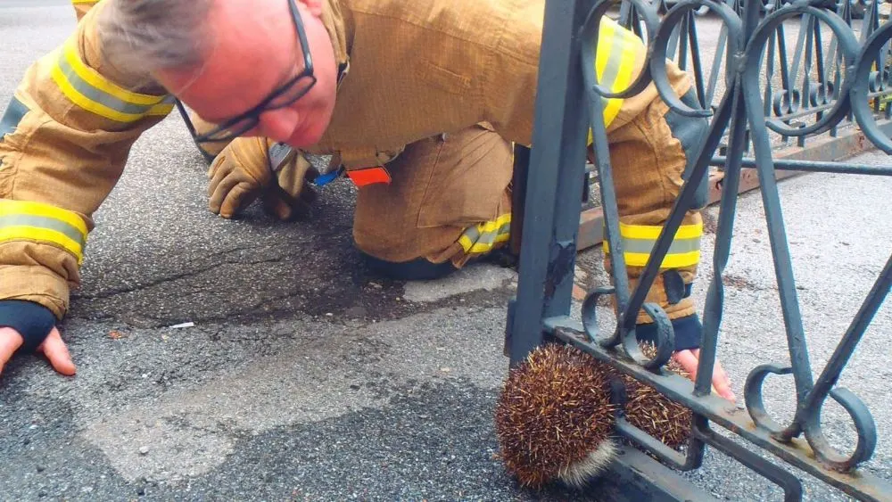 รอดแล้ว! นักผจญเพลิงในออสเตรียช่วยเหลือเม่นตัวอ้วนติดแหงกคาประตูเหล็กดัด