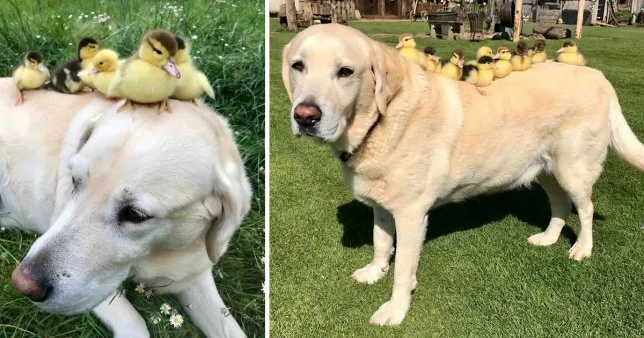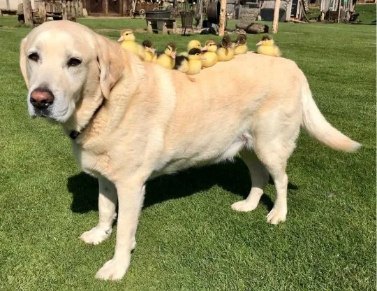 ใจละลาย! ลาบราดอร์ตัดสินใจสวมบทพ่อเพื่อรับเลี้ยงดูลูกเป็ดกำพร้า 9 ตัว