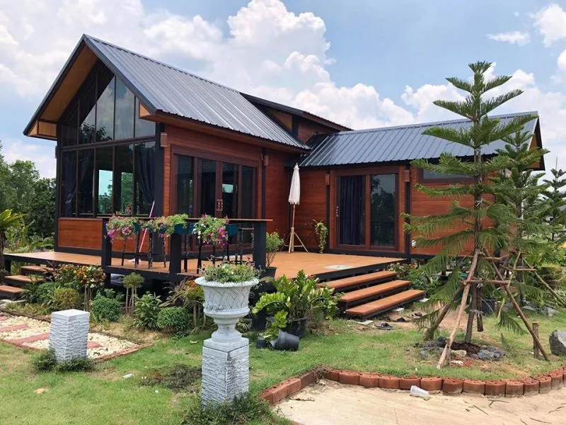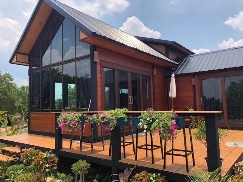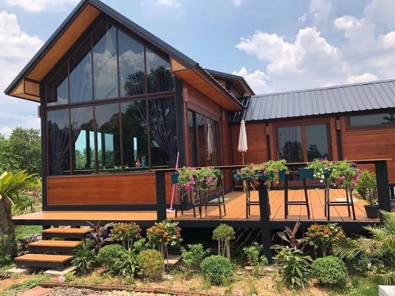 เป็นอีกหนึ่งไอเดียดีๆ สำหรับใครที่กำลังมองหาแบบบ้านเป็นของตัวเอง วันนี้ขอแนะนำแบบบ้านสวยๆ มาฝาก บ้านหลังนี้เป็นบ้านน็อคดาวน์ไม้ชั้นครึ่ง สไตล์ Nordic สไตล์รีสอร์ท ออกแบบเป็นบ้านพักอาศัย พร้อมร้านกาแฟ พร้อมมีระเบียงเปิดโล่งด้านนอกด้วย