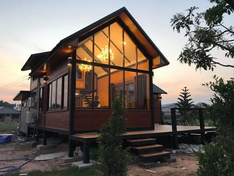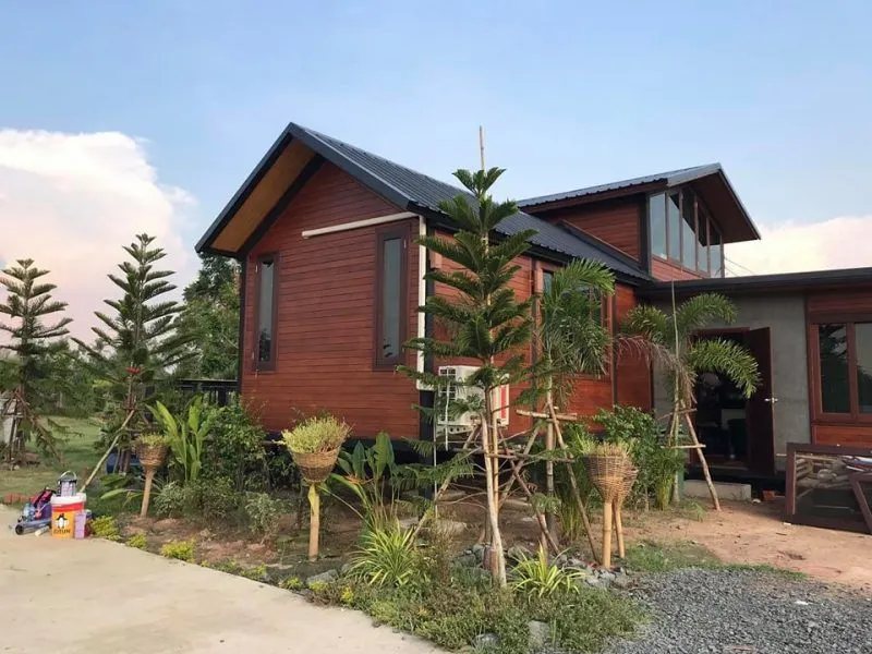 โดยบ้านหลังนี้ผลงานการออกแบบก่อสร้างโดย “TinyhomeThailand บ้านสำเร็จรูป/น็อคดาวน์” สถานที่ก่อสร้าง ร้านกาแฟบ้านไม้ชายทุ่ง อำเภอขุนหาญ จังหวัดศรีสะเกษ ติดตามชมกันได้เลยครับ
