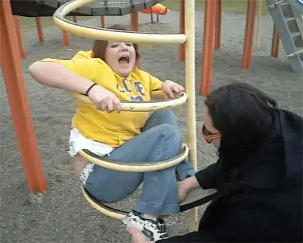 วันนี้เราจะพาทุกท่านไปชมภาพสุดฮาของบรรดาผู้ใหญ่ที่อยากจะย้อนตัวเองกลับไปเป็นเด็กอีกครั้ง แต่ลืมไปว่า การเป็นผู้ใหญ่นั้นขนาดตัวมันใหญ่ขึ้นกว่าเดิมมาก ไม่ได้พอดีกับของเล่นเด็กอย่างเมื่อก่อนแล้ว เมื่อเป็นอย่างนั้นเหตุการณ์ติดออกไม่ได้จึงต้องบังเกิดขึ้นในทันที