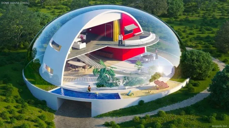 บ้านโดม ออกแบบในปี 1950 บ้านหลังนี้สามารถหมุนได้รอบตัว รับแสงหรือหลบแสงได้ตามใจชอบ
