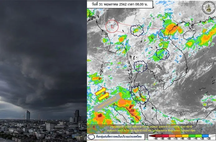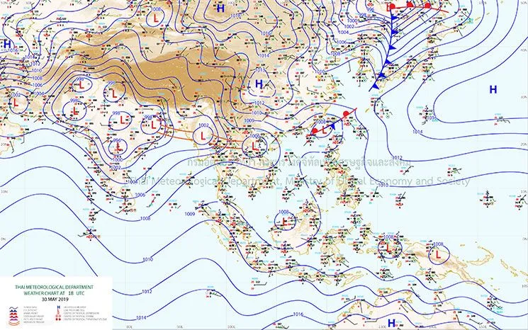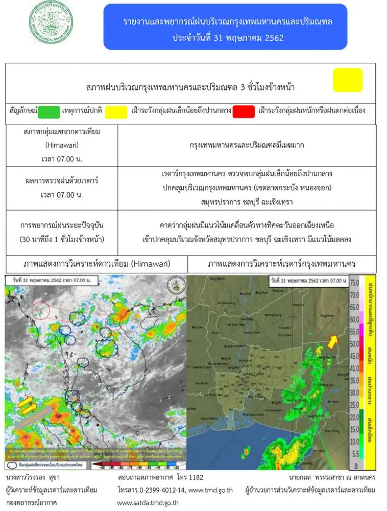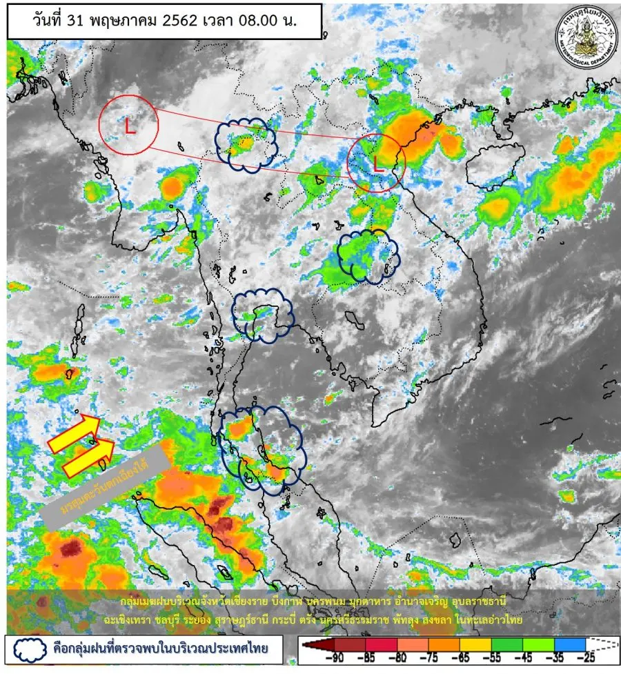 วันที่ 31 พ.ค.62 พยากรณ์อากาศ 24 ชั่วโมงข้างหน้า บริเวณประเทศไทยยังคงมีฝนฟ้าคะนองต่อเนื่องกับมีฝนตกหนักบางแห่งในภาคเหนือ ภาคตะวันออกเฉียงเหนือ ภาคตะวันออก และภาคใต้ ขอให้ประชาชนในพื้นที่เสี่ยงภัยระวังอันตรายจากฝนตกหนักและฝนที่ตกสะสม ซึ่งอาจทำให้เกิดน้ำท่วมฉับพลัน น้ำป่าไหลหลากไว้ด้วย สำหรับทะเลอันดามันและอ่าวไทยตอนบนมีคลื่นสูง 1-2 เมตร บริเวณที่มีฝนฟ้าคะนองคลื่นสูงมากกว่า 2 เมตร ขอให้ชาวเรือบริเวณดังกล่าวเดินเรือด้วยความระมัดระวัง