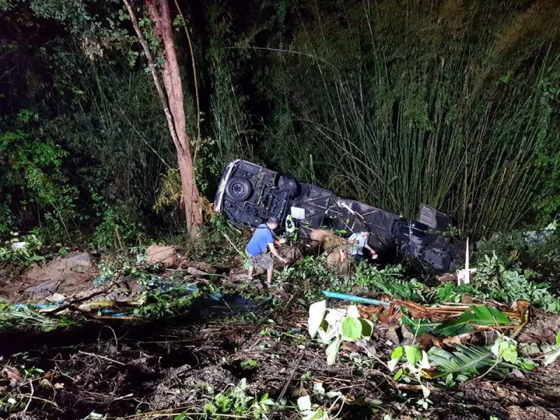 ฝนตกหนักรถทัวร์ "เชียงใหม่-แพร่" เสียหลักตกเหวเจ็บระนาว