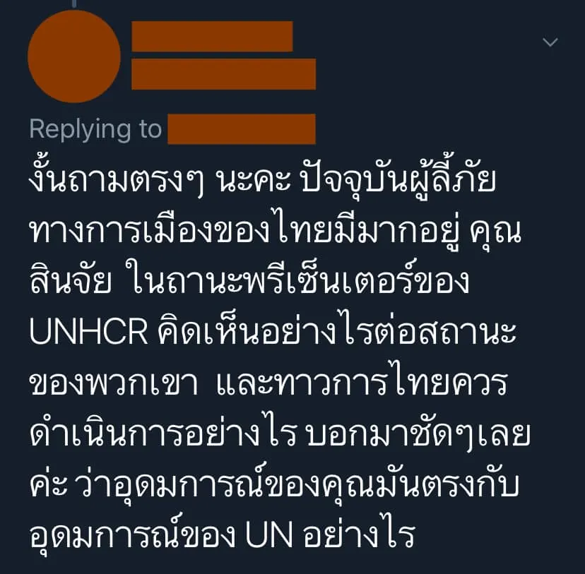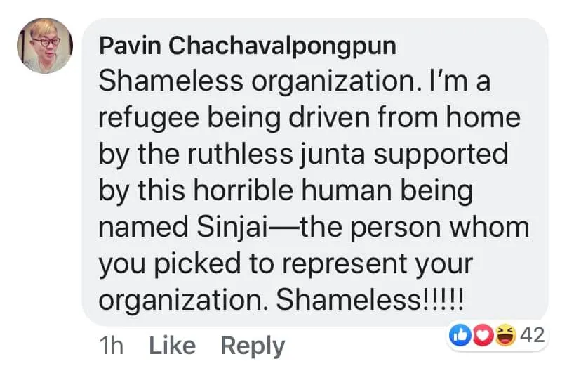 5- คนกลุ่มนี้ยังขอให้ UNHCR ทบทวนใหม่ โดยอ้างว่าสินจัยเป็นพรีเซนเตอร์สนับสนุนรัฐบาลทหาร การเลือกเธอมาทำงานด้านสิทธิมนุษยชนจึงเป็นสิ่งที่ย้อนแย้ง