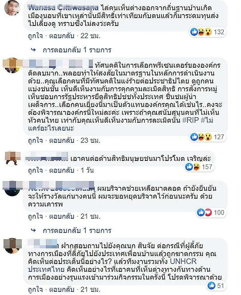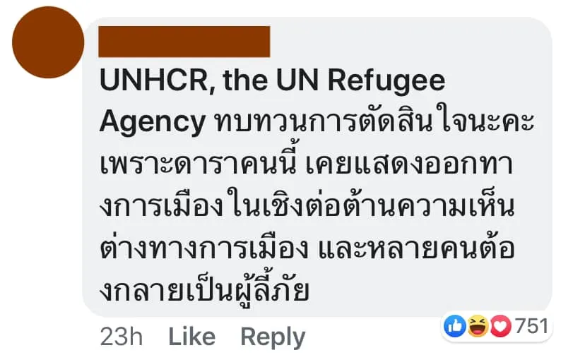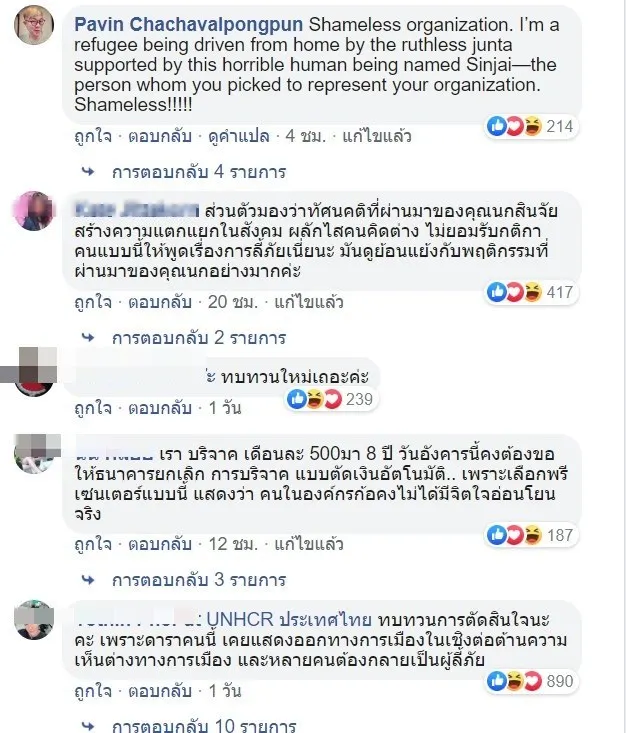 เกิดประเด็นดราม่าหาก UNHCR เลือก ‘นก สินจัย’ เป็นพรีเซนเตอร์ เกิดเสียงต่อต้านจากผู้ที่มองว่าสินจัยเป็นหนึ่งในผู้สนับสนุนรัฐประหาร ด้านชาวเน็ตบางคนลั่น ! ประกาศยกเลิกบริจาคเงินให้ UNHCR