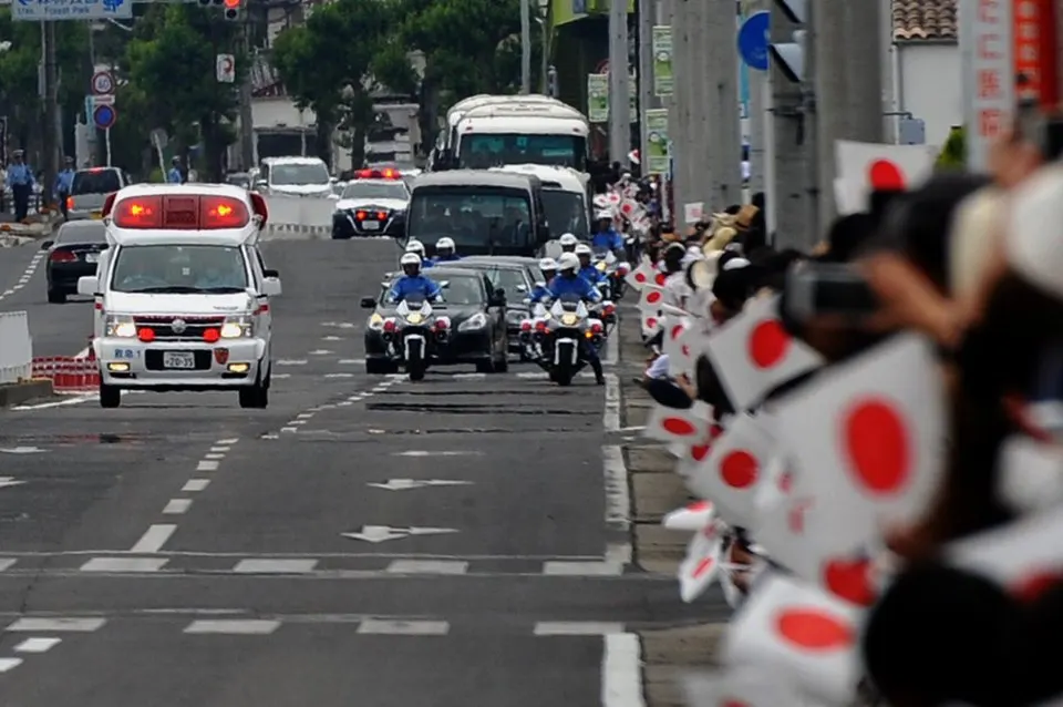 ตำรวจที่ขี่รถจักรยานยนตร์นำขบวนเสด็จอยู่นายหนึ่งได้แยกตัวออกจากขบวนไป ออกไปนำหน้ารถพยาบาล และรถขบวนเสด็จของสมเด็จพระจักรพรรดิ์ได้หยุดรถ รอให้รถพยาบาลผ่านไปก่อน จากนั้นขบวนเสด็จจึงได้ออกเดินทางต่อ