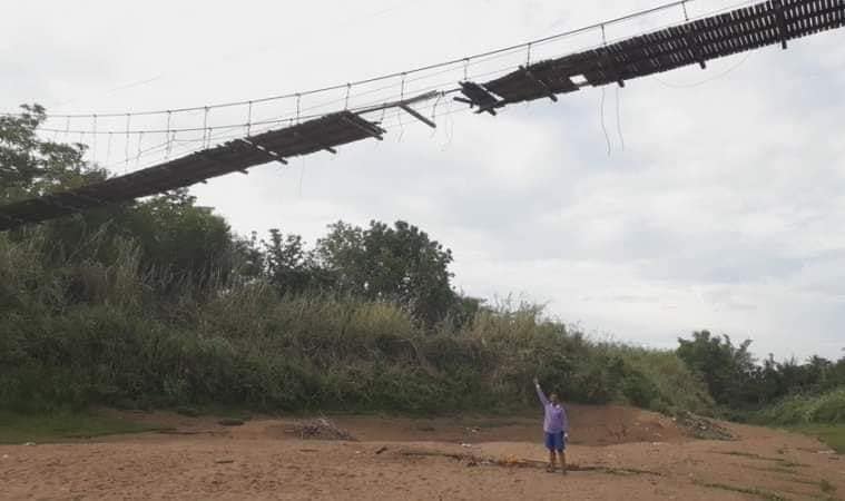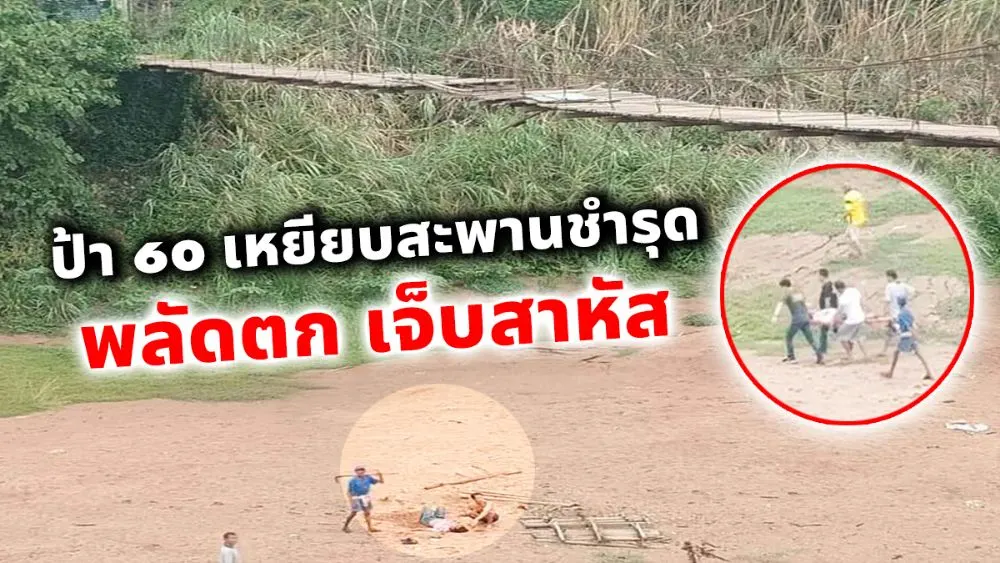 ป้าวัย 60 เดินข้ามสะพานแขวนชำรุด เหยียบไม้ผุ พลัดตกสะพานสูงเท่าตึก 4 ชั้น ร่วงกระแทกแม่น้ำยม ที่แห้งขอด เจ็บสาหัส ชี้เหยียบเจอแผ่นไม้ผุ ไร้งบซ่อมแซม