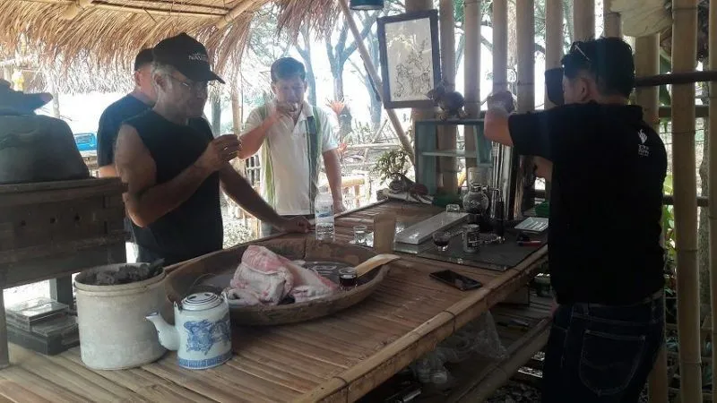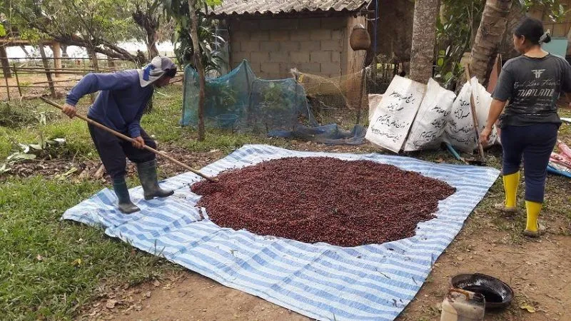 นอกจากนั้น เขายังอธิบายให้ฟังเพิ่มเติมว่า เมื่อควายกินเม็ดกาแฟเข้าไปแล้ว เม็ดกาแฟจะย่อยอยู่ในท้องควาย 2 วันจึงจะถูกขับถ่ายออกมา เขาจึงจ้างให้ชาวบ้านแยกเม็ดกาแฟออกให้ โดยให้นำขี้ควายไปผสมกับปลายข้าวมาให้ไก่กิน พอไก่จิกกินก็ทำให้เห็นเม็ดกาแฟชัดขึ้น จากนั้นก็เอามาล้างน้ำ แกะเปลือกล้างเมือก แล้วก็ผึ่งให้แห้ง ทิ้งไว้ประมาณ 4 เดือน เพื่อให้ได้รสชาติและความหอม สามารถนำไปคั่วชงได้