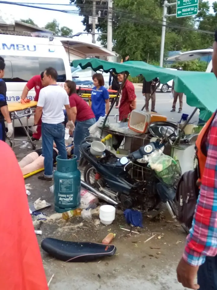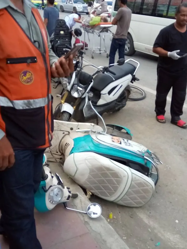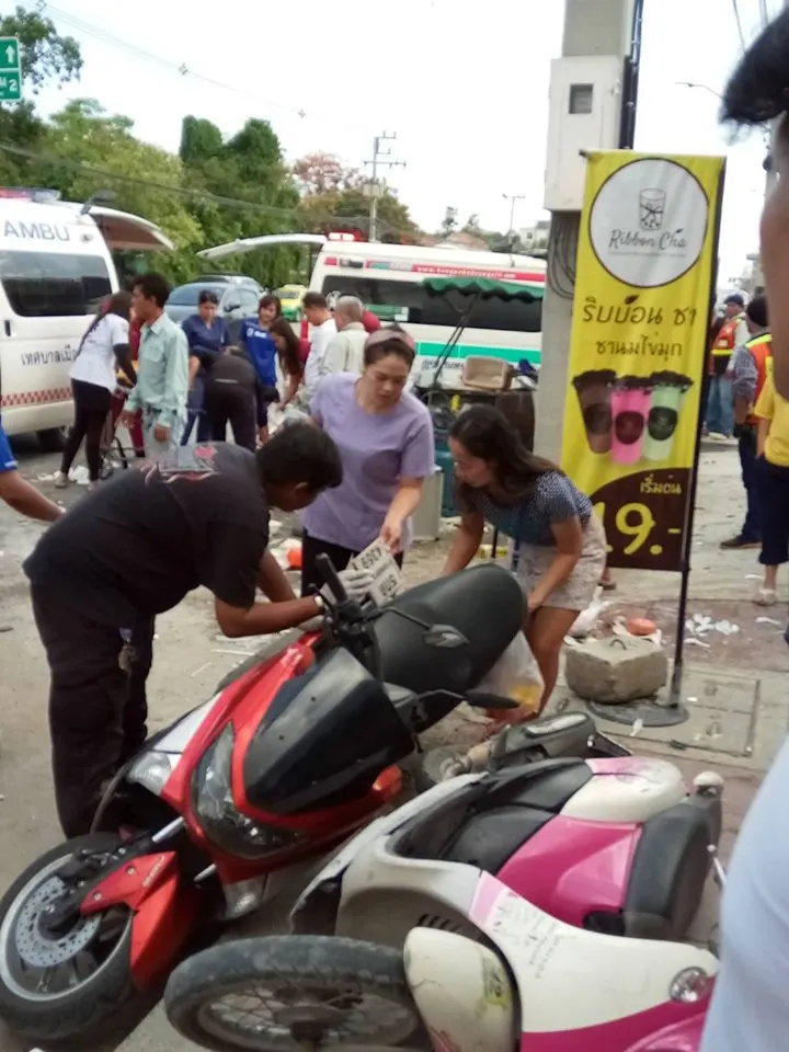 วันนี้ ( 4 มิถุนายน 2562) เบื้องต้น..ที่คลอง4 ปทุมธานี รถฟอร์จูนเนอร์ หมุนกวาดรถก๋วยเตี๋ยวและมอเตอร์ไซค์ จักรยานปั่น และคนเดินเท้า ทะลุพุ่งเข้าร้านเฟอร์นิเจอร์ไม้ บาดเจ็บรวมทั้งหมด 7 ราย