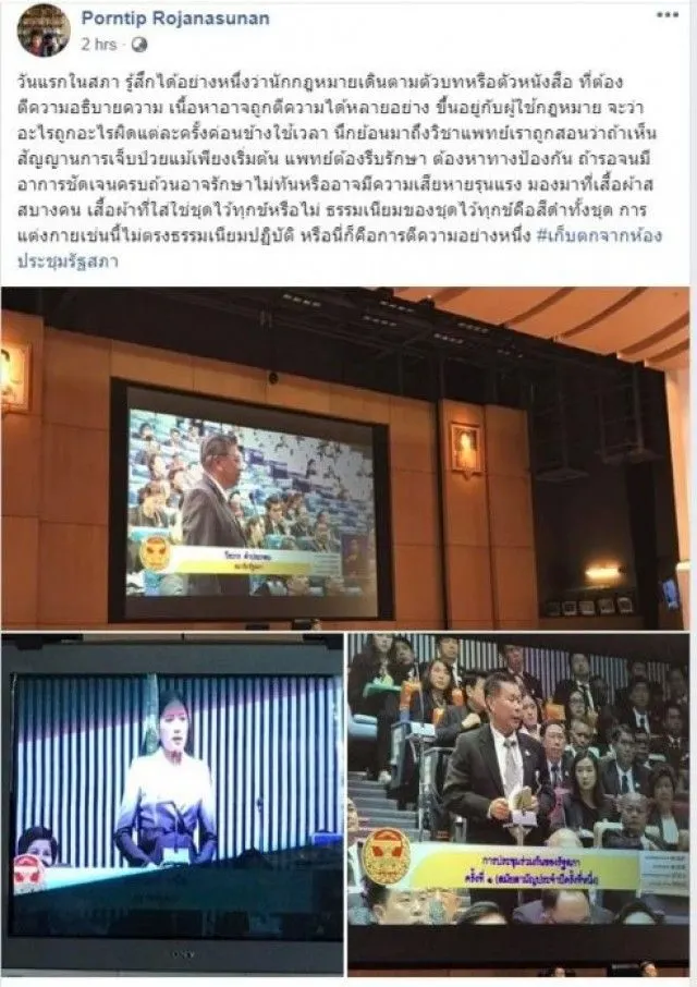 กลายเป็นประเด็นขึ้นมาทันที เมื่อ แพทย์หญิง คุณหญิง พรทิพย์ โรจนสุนันท์ สมาชิกวุฒิสภา โพสต์เฟซบุ๊กและอินสตาแกรม เป็นรูป น.ส.พรรณิการ์ วานิช ส.ส.บัญชีรายชื่อ พรรคอนาคตใหม่ วิพากษ์วิจารณ์การแต่งกายของ น.ส.พรรณิการ์ ในการประชุมร่วมรัฐสภาเพื่อเลือกนายกรัฐมนตรี ในวันนี้ (5 มิ.ย.) ตอนหนึ่งระบุว่า มองมาที่เสื้อผ้าส.ส. บางคน เสื้อผ้าที่ใส่ใช่ชุดไว้ทุกข์หรือไม่ ธรรมเนียมของชุดไว้ทุกข์คือสีดำทั้งชุด การแต่งกายเช่นนี้ไม่ตรงธรรมเนียมปฏิบัติ หรือนี่ก็คือการตีความอย่างหนึ่ง