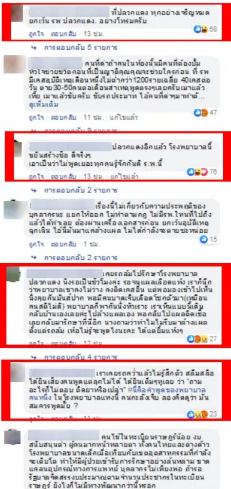 อย่างไรก็ตาม หลังคลิปวีดีโอดังกล่าวถูกเผยแพร่ออกไป ก็ได้เรียกเสียงวิพากษ์วิจารณ์ตามมาเป็นจำนวนมาก โดยมีชาวโซเชียลฯในพื้นที่บางส่วน ได้เข้ามาแสดงความคิดเห็นในฐานะผู้เคยเข้ารับการบริการในโรงพยาบาลแห่งนี้ บอกว่าเคยพาคุณพ่อไปล้างแผล พอล้างเสร็จจะขอใบรับรองแพทย์ แต่พยาบาลกลับถามว่าเอาไปทำอะไร