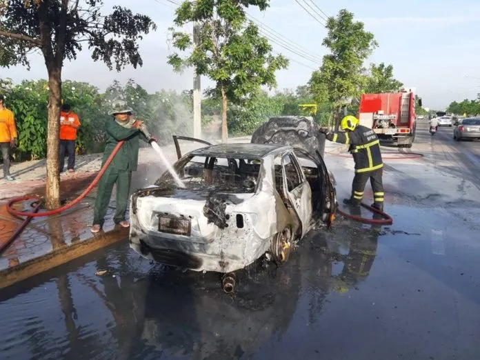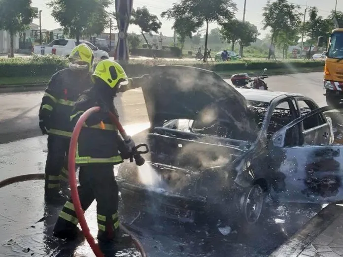 เมื่อเวลา 07.00 น.วันที่ 6 มิ.ย. ร.ต.อ.จตุพงศ์ อาจหาญ รอง สว.(สอบสวน) สน.บางเขน รับแจ้งเหตุเพลิงไหม้รถยนต์ บนถนนเทพรักษ์ ฝั่งตรงข้ามหมู่บ้านศุภลัย มุ่งหน้าถนนพหลโยธิน แขวงท่าแร้ง เขตบางเขน กทม.จึงรุดไปตรวจสอบ พร้อมประสานสำนักป้องกันและบรรเทาสาธารณภัย นำรถน้ำดับเพลิง 1 คันและ อปพร.เขตสายไหม