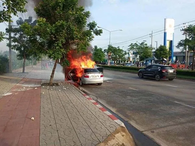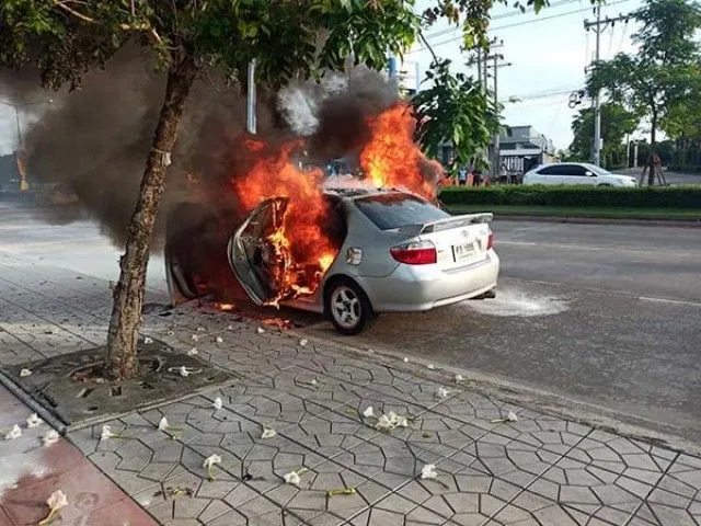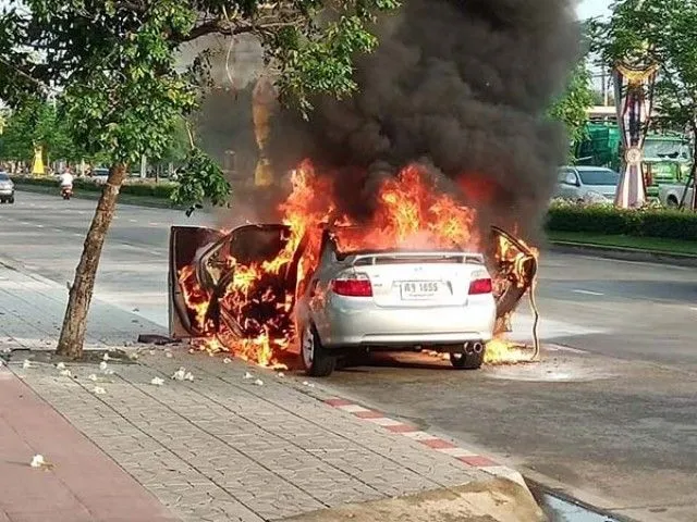 เจ้าของเก๋งขับมาดีๆ ไฟลุกท่วมทั้งคัน กู้ภัยตาไว ถ่ายเลขทะเบียน