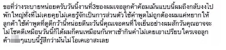 วันนี้คุณเจอคนที่ใจเย็นอย่างผม สักวันคุณอาจจะไม่โชคดีเหมือนวันนี้ก็ได้ ผมก็คนเหมือนกัน หาเช้ากินค่ำ ไม่เคยเอาเปรียบใคร เจอลูกค้าแบบนี้รู้สึกว่ามันไม่โอเคเอาซะเลย