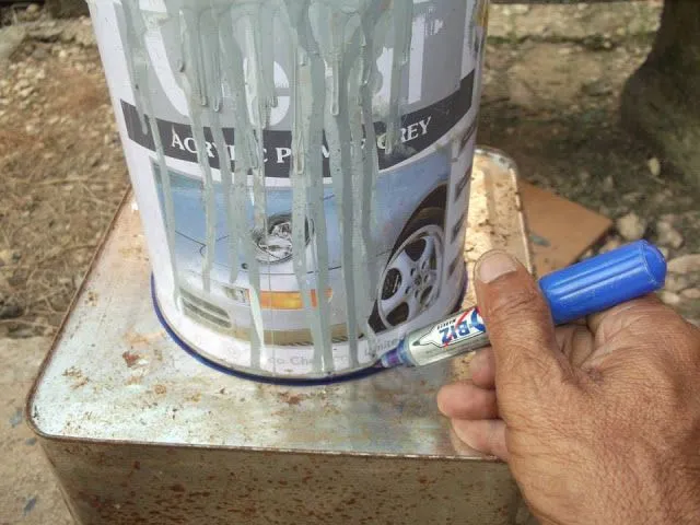 2.ปากกาเคมี..ขีดเส้นวงกลมรอบกระป๋องสี..