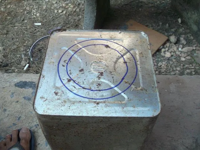 1.กระป๋องสีวางให้ได้กึ่งกลาง….ตอนนี้จะทำช่องใส่ห้องเผาไหม้ครับ..