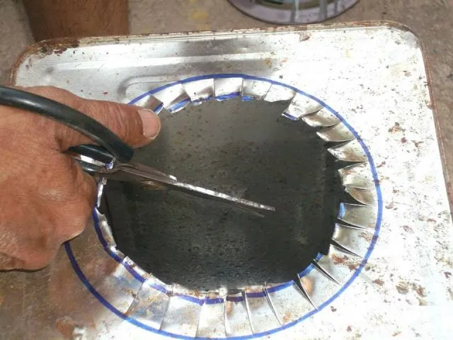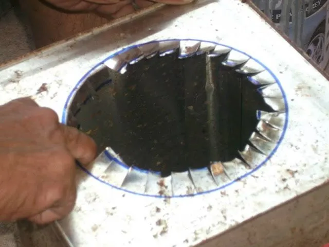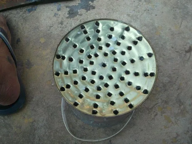 15.เจาะถี่ๆแบบนี้ครับ…เพื่อให้ขี้เถ้าร่วงลงไปด้านล่าง….