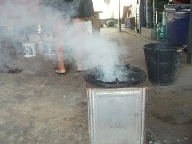 ผาไฟล้างสีเสียก่อน…ให้สังเกตุ..ใส่เศษไม้ไปจนเต็ม..พอไฟติดแล้วมองแทบไม่เห็นควัน..