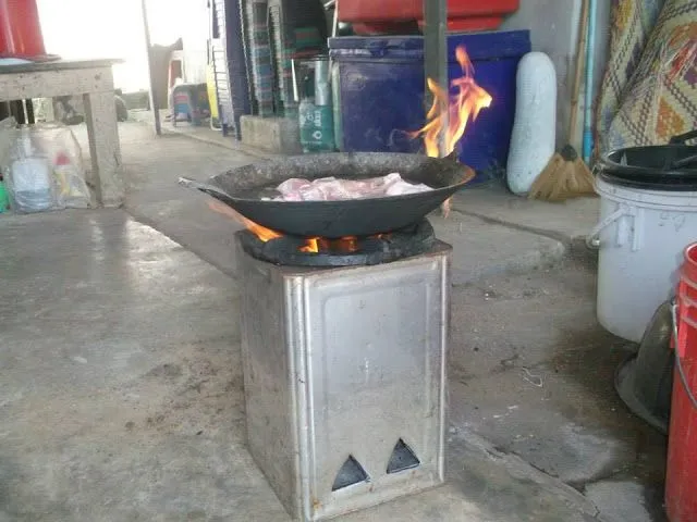 แม่บ้านยิ้ม…บอกขอทดลองต้มไก่ให้น้องหมาหน่อย…เอาไปเลยจ้ะที่รัก…. ก่อนวางหม้อหรือกะทะ…ต้องหาอะไรมารองก่อน..เพราะถ้าวางลงไปเลยจะไปปิดห้องเผาไหม้..ไฟจะดับและมีลมกระแทกออกมาเสียงดังพรึบ..แต่พอยกกะทะออกไฟก็ติดใหม่..ผมจะใช้ก้อนอิฐรอง..แต่แม่บ้านไปเอาขารองที่เตาแก็สมา….