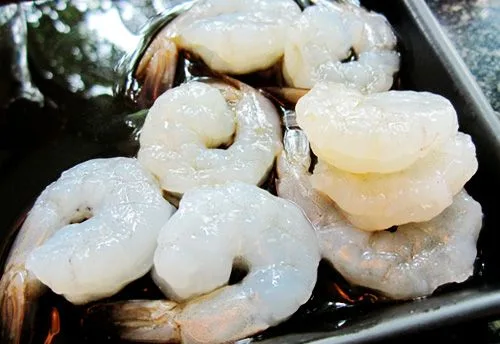 ทำการแกะเปลือกกุ้ง และเด็ดหัวกุ้งหรือถุงขี้กุ้งออก (ถุงดำๆ บนหัวกุ้ง) เพราะในส่วนหัวของกุ้งจะมีถุงขี้กุ้งอยู่ ซึ่งจะทำให้ตัวเอ็นไซม์กุ้ง ออกมาย่อยสลายเนื้อกุ้งโดยธรรมชาติของมัน ซึ่งถ้าเราซื้อกุ้งสดมาถ้ายังไม่ได้นำไปประกอบอาหารอะไร ควรเด็ดหัวกุ้งหรือถุงขี้กุ้ง นั้นออกเสียก่อน เพื่อให้กุ้งยังคงความสดอยู่ได้เพิ่มขึ้น จากปกติ