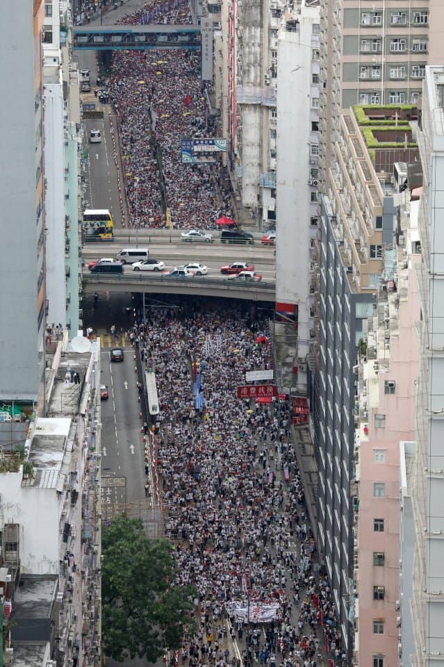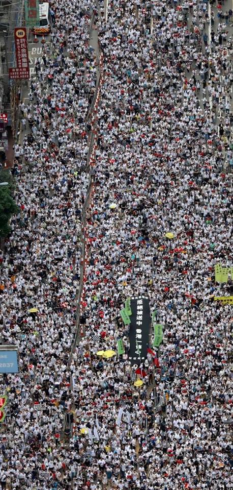 ประชาชนฮ่องกงกว่าครึ่งล้านร่วมชุมนุมใหญ่ ต้านกฎหมายส่งตัวผู้ร้ายข้ามแดนให้จีน
