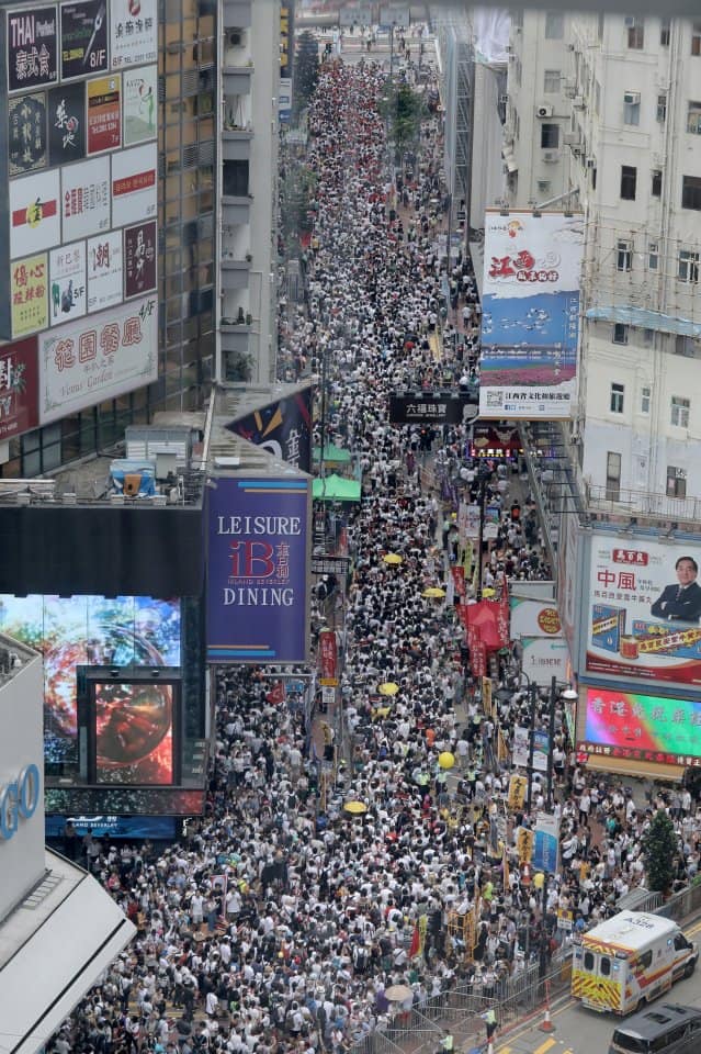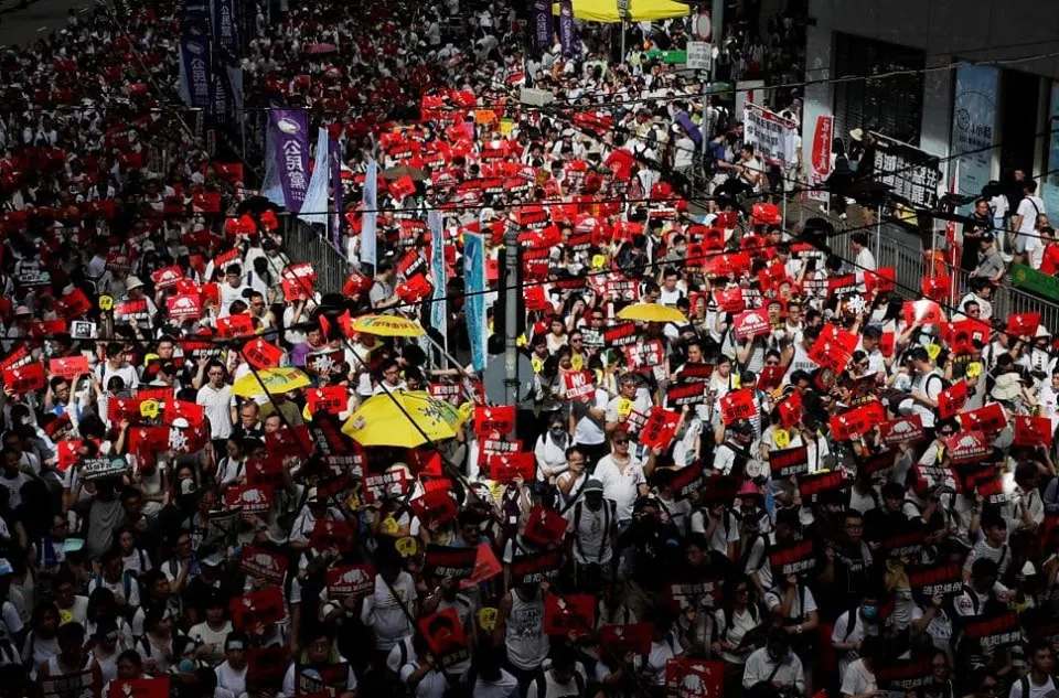 สำนักข่าวรอยเตอร์รายงานว่า ผู้คนนับแสนรวมตัวกันตามท้องถนนบนเกาะฮ่องกง เมื่อวันที่ 9 มิถุนายน 2562 ในการชุมนุมต่อต้านกฎหมายการส่งผู้ร้ายข้ามแดน ที่จะเป็นการเปิดทางให้ส่งตัวผู้ต้องสงสัยไปยังประเทศจีนเพื่อดำเนินคดีได้