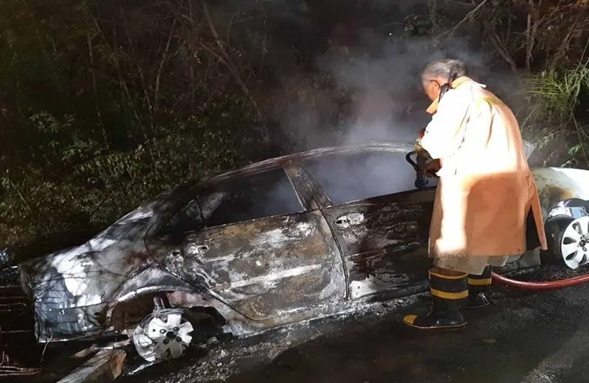 พบไฟกำลังลุกไม้รถเก๋ง โดยมีเจ้าหน้าที่ดับเพลิงกำลังฉีดน้ำ เพื่อดับเปลวเพลิงที่กำลังลุกไหม้อย่างรุนแรง โดยใช้เวลากว่า 10 นาที จึงสามารถดับเพลิงได้