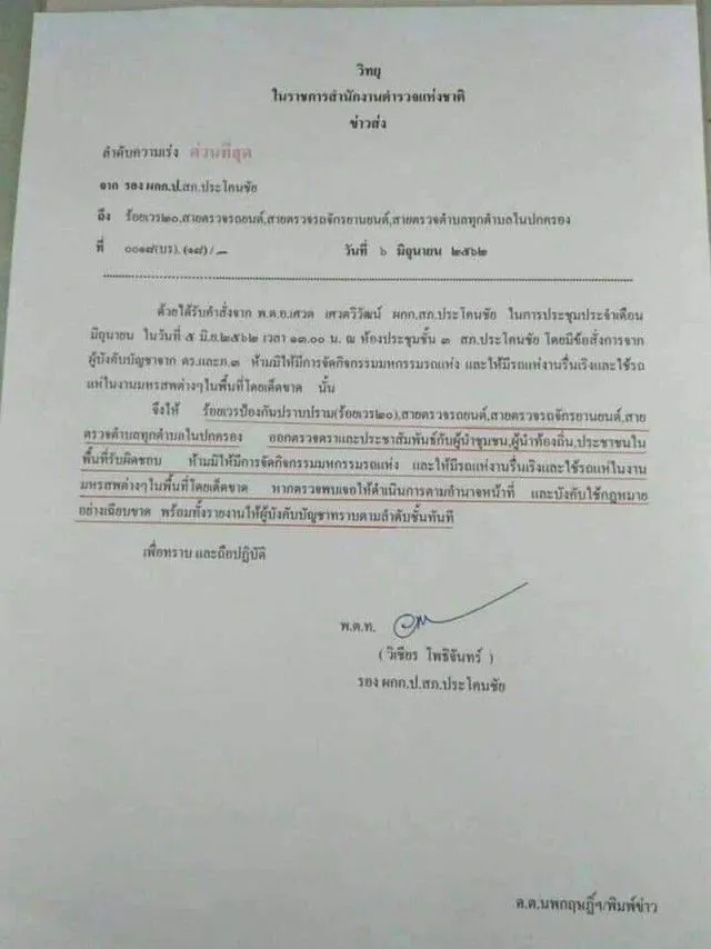 จากกรณีที่ในโลกออนไลน์ได้มีการแชร์ภาพหนังสือวิทยุในราชการสำนักงานตำรวจแห่งชาติ (ด่วนที่สุด) เลขที่ 0018 (บร.).(18)/_ จาก รอง ผกก.ป.สภ.ประโคนชัย ถึง ร้อยเวร 20 , สายตรวจรถยนต์ , สายตรวจรถจักรยานยนต์ , สายตรวจตำบลทุกตำบลในปกครอง ลงวันที่ 6 มิ.ย. 2562 ระบุถึงข้อสั่งการจากตำรวจภูธรภาค 3 ให้เจ้าหน้าที่ตำรวจ สภ.ประโคนชัย จ.บุรีรัมย์ กวดขันห้ามประชาชนใช้ “รถแห่” จัดกิจกรรมงานรื่นเริงต่างๆ