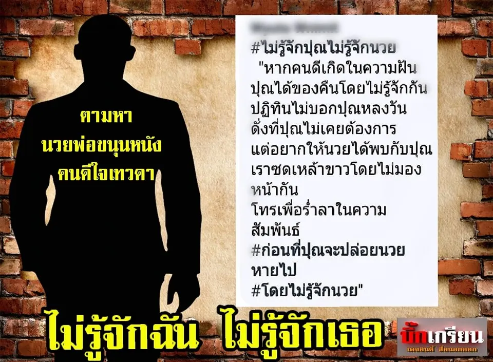 มีคนแต่งเนื้อเพลง อ่านแล้วมีความสุข ยิ่งถ้าร้องให้เป็นทำนอง เพลง ไม่รู้จักฉัน ไม่รู้จักเธอ ยิ่งน่ารัก ร้องไป ยิ้มไป สุขใจ พอๆกับเรื่องราวดีๆ ระหว่างแม่ค้าออนไลน์ กับ นวยพ่อขนุนหนัง คนดีใจเทวดา เก็บกระเป๋าแบรนด์เนม ส่งคืน ขอค่าเหล้า ค่าเสียเวลา ค่าส่งไปรษณีย์ 200 บาท