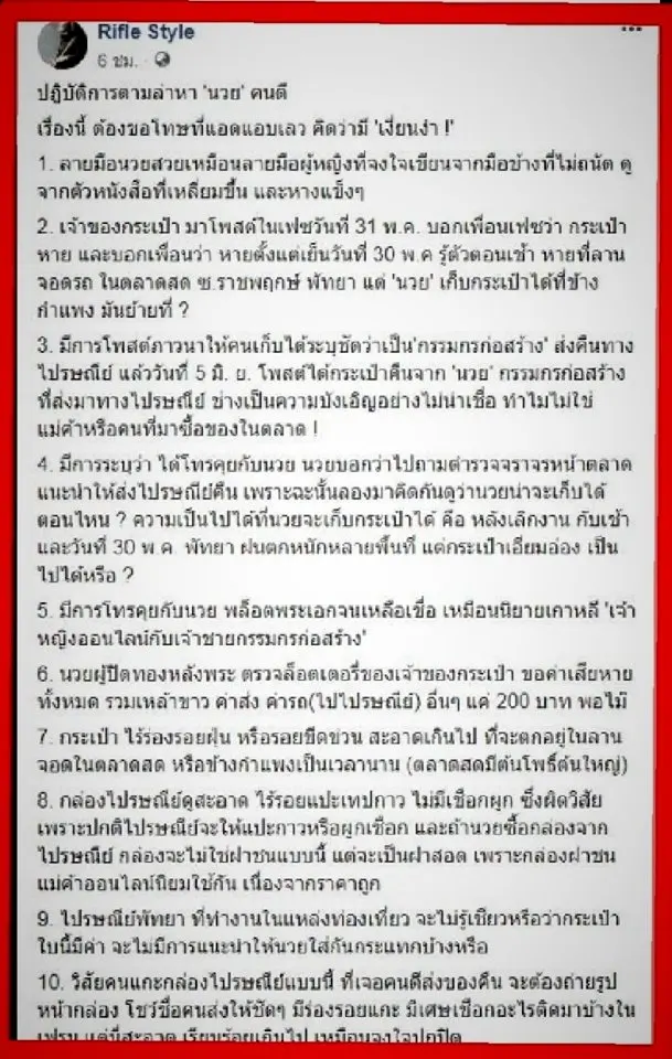 จากข่าวนี้ คนจนผู้ยิ่งใหญ่ ส่งคืนกระเป๋า CHANEL หาย แต่พลเมืองดีส่งคืน พร้อมแนบจดหมายสุดฮา https://board.postjung.com/1149330 ล่าสุดชาวเน็ตตั้งข้อสงสัย จับผิดมาเป็นฉากๆ