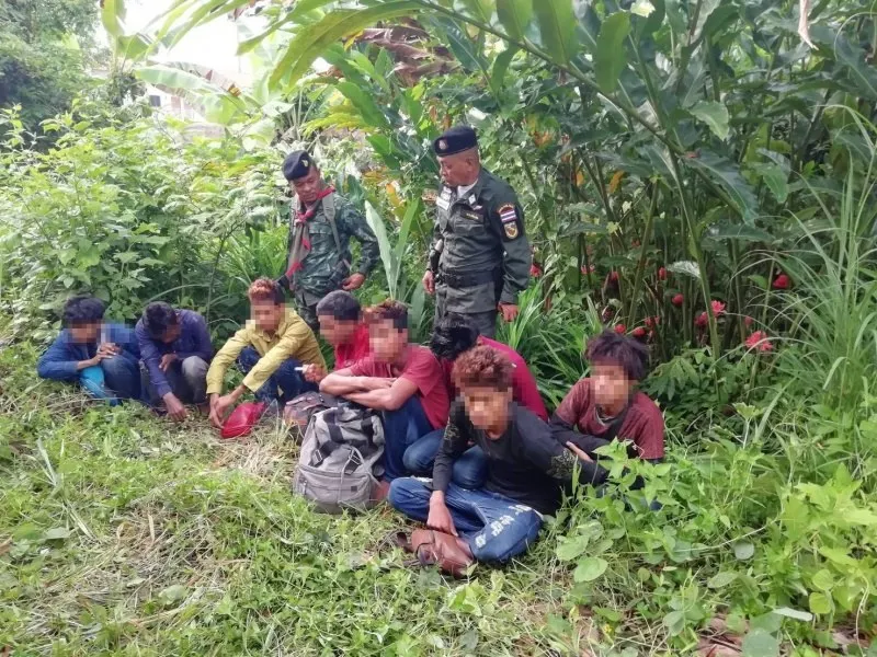 รวบ 8 ชายต่างด้าว หลบซ่อนในป่าละเมาะ