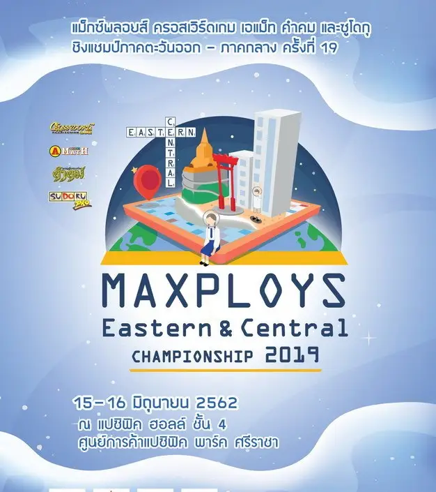เตรียมพบกับการแข่งขัน มหกรรมเกมกีฬาทางวิชาการระดับภูมิภาค “แม็กซ์พลอยส์ ครอสเวิร์ด เอแม็ท คำคม และซุโดกุ ชิงแชมป์ภาคตะวันออก – ภาคกลาง ครั้งที่ 19” ขอเชิญร่วมเป็นกำลังใจ และร่วมเชียร์เยาวชนที่เข้าร่วมการแข่งขันได้ในวันที่ 15 – 16 มิถุนายน 2562 เวลา 9.00 – 18.00 น. ณ ห้องแปซิฟิค ฮอลล์ ชั้น 4 และลานโปรโมชั่น ชั้น 1 ศูนย์การค้าแปซิฟิค พาร์ค ศรีราชา