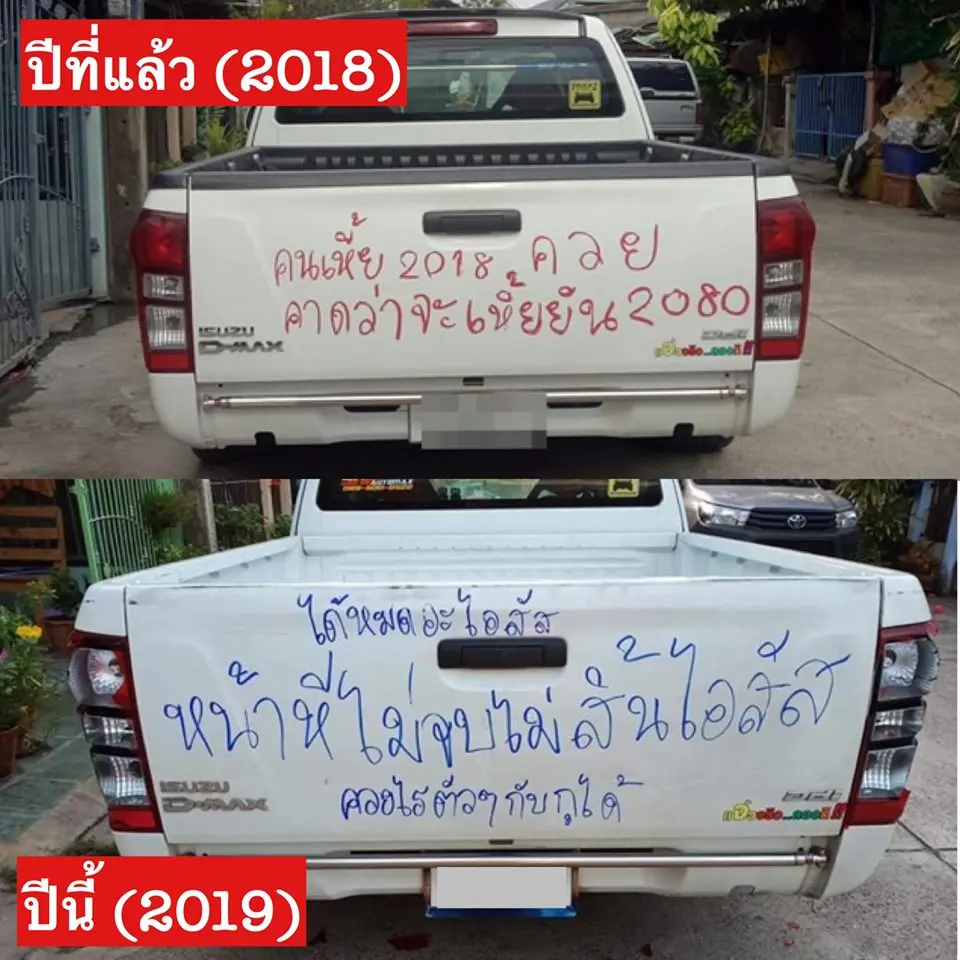 5- มีคนจำได้ว่าคู่นี้เคยทะเลาะหึงหวงกันแบบนี้เมื่อปีที่แล้ว และสวยเขียนรถประจานเหลิมบนรถคันเดียวกันมาแล้ว