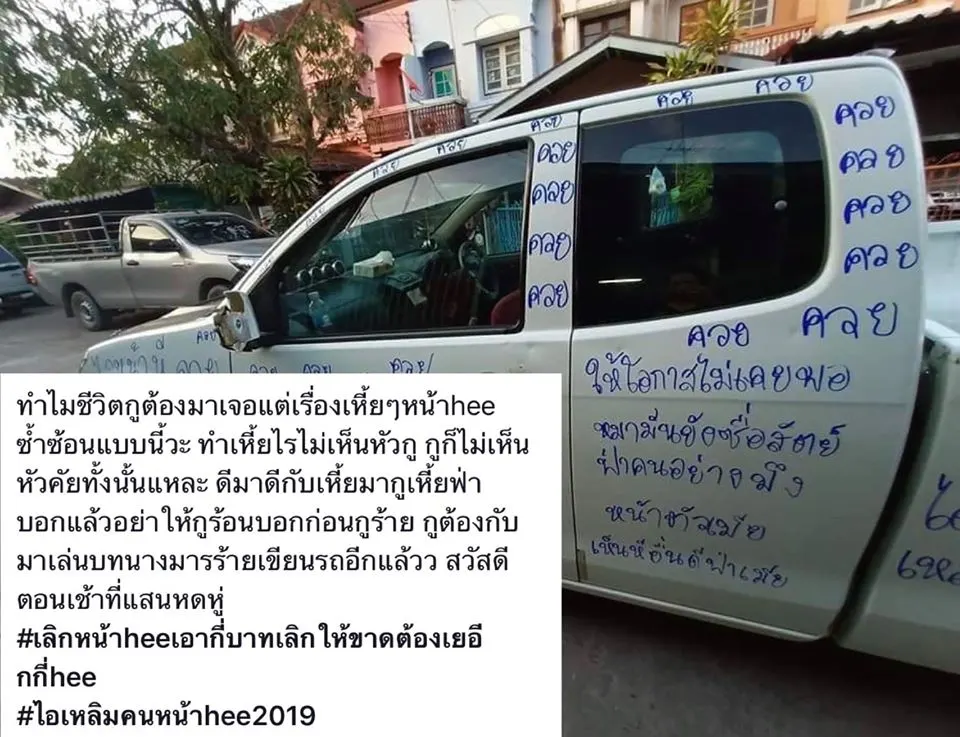 2- พิษรักแรงหึง ทำให้สวยเขียนประจานบนรถกระบะของเหลิมด้วยข้อความหยาบคายรอบคัน แถมทุบกระจกมองข้าง มือจับประตู และไฟท้ายจนแตก แล้วถ่ายรูปรถมาโพสต์ประจานในเฟซบุ๊ก