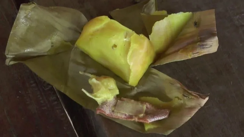 ส่วนป้า หยิบขนมตาลแกะห่อเข้าปาก เคี้ยวกินอย่างเอร็ดอร่อย สักครู่ป้าเริ่มเอะใจร้องทักว่าขนมตาลใส่เนื้อไก่ด้วยหรือวะ แล้วป้าเคี้ยวนุบนับๆ อีกหลายครั้ง แต่กัดไม่ขาด จึงคายออกมาดู
