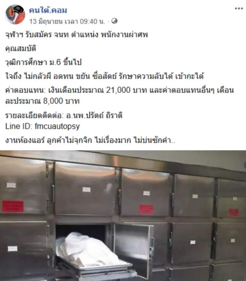 วันที่ 16 มิถุนายน 2562 ผู้สื่อข่าวรายงานว่า โลกออนไลน์มีการแชร์ข้อความของผู้ใช้เพจเฟซบุ๊กชื่อ คนใต้.คอม ซึ่งเป็นโพสต์รับสมัครงานเงินเดือนสูงมากโดยระบุข้อความว่า จุฬาฯ รับสมัคร จนท